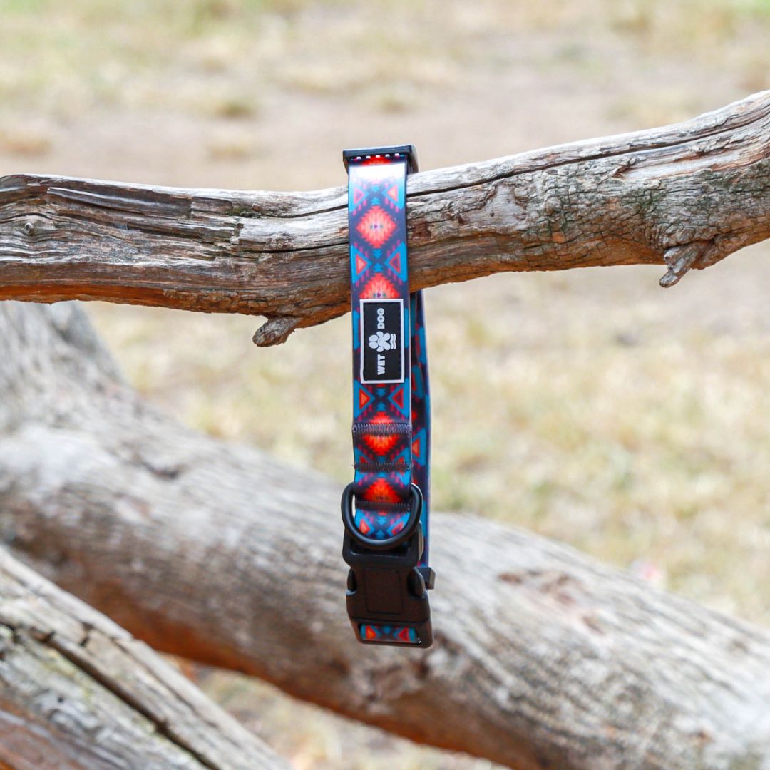 Get ready to explore! Our new NOMAD collar is designed for the wanderers, the adventurers, and the dogs who live life off the beaten track. With a trendy Aztec-inspired print that perfectly matches our popular NOMAD dog bowls and kibble bags, this collar is built for the adventure ahead.