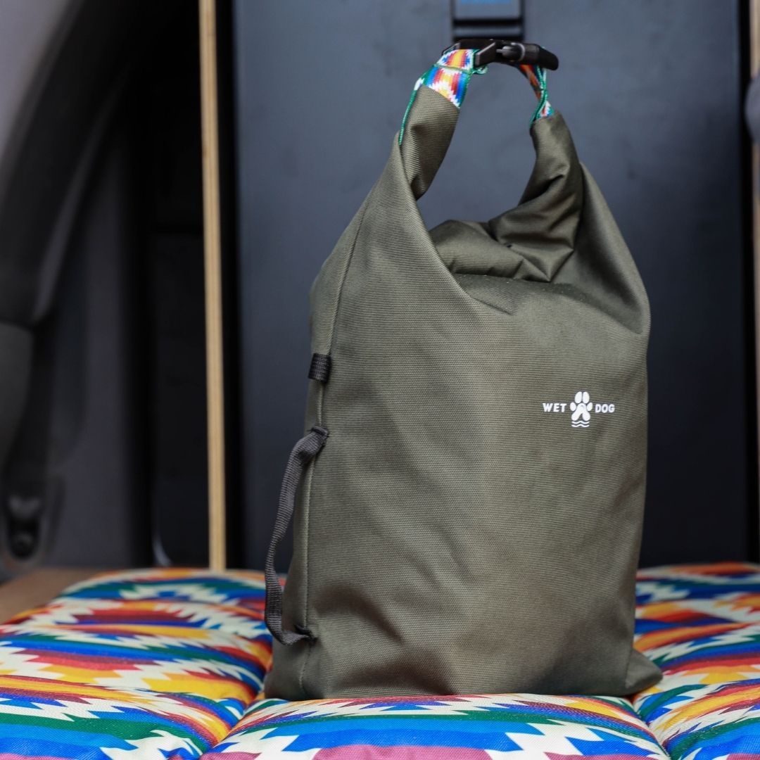 The Wet Dog and Co Wanderlust Kibble Bag. Designed for dog owners who love to explore, this bag ensures your furry friend never misses a meal or a favourite toy, no matter where your adventures take you. Perfect for storing kibble, it's equally adept at carrying treats, toys, or other pet essentials, making it the ideal solution for hassle-free pet care during travels.
